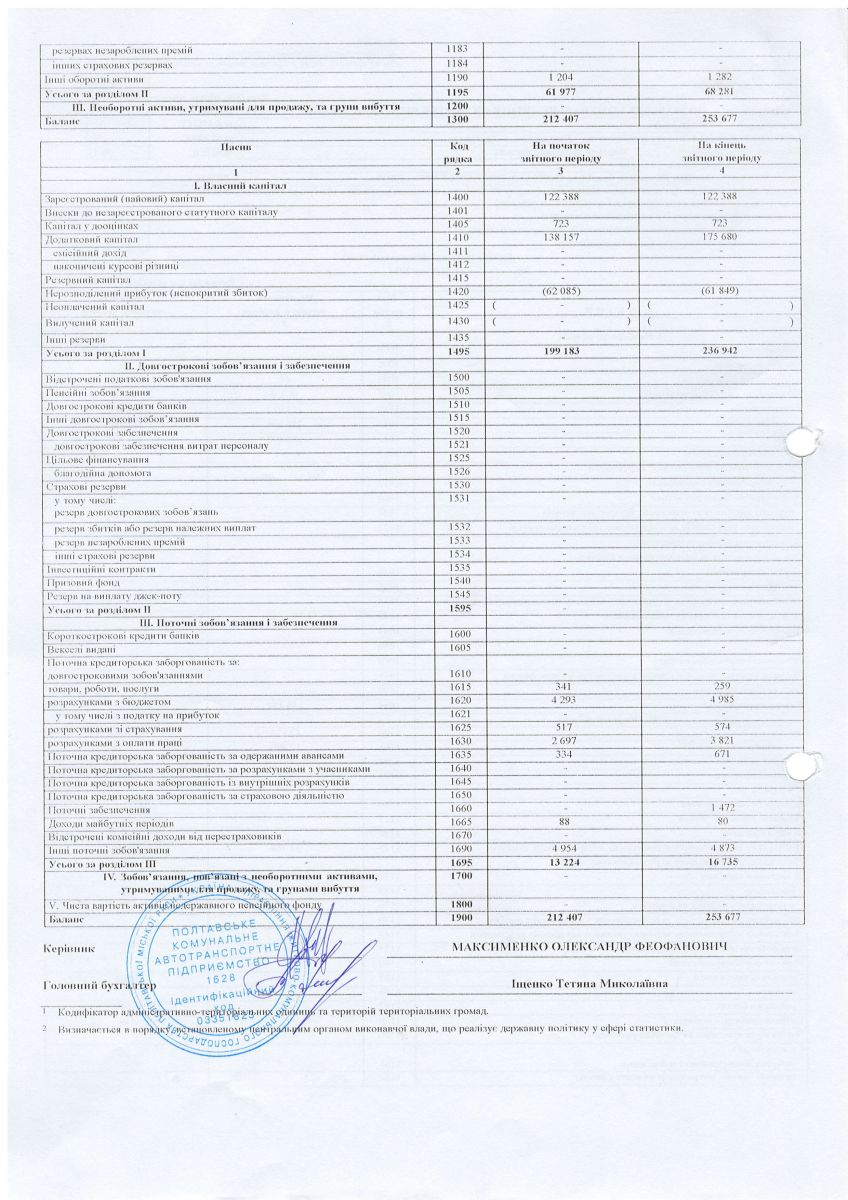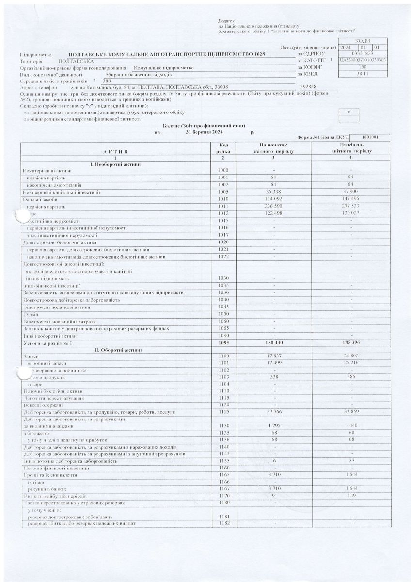 Фінансова звітність Полтавського КАТП-1628 за 1 квартал 2024 року