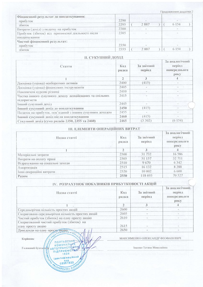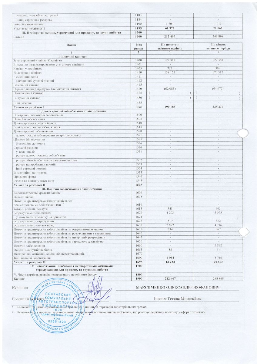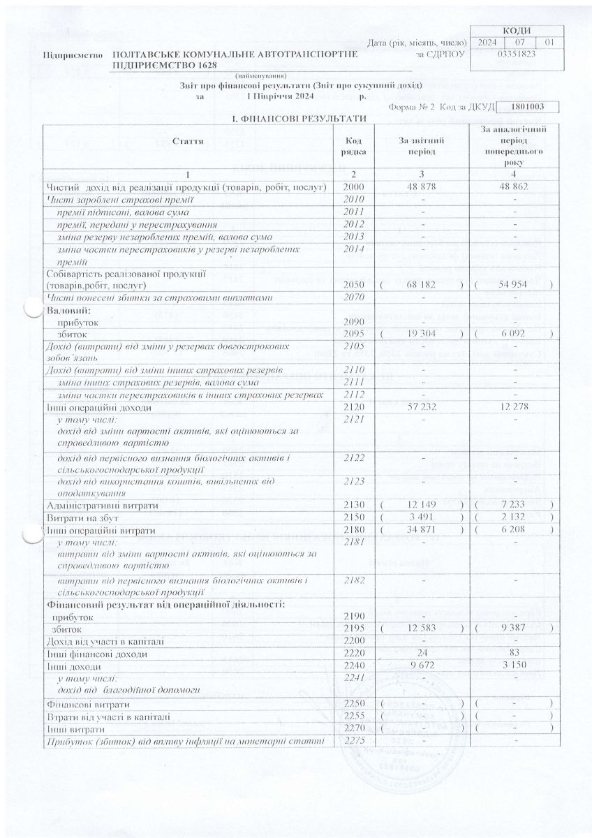 Фінансова звітність Полтавського КАТП-1628 за 1 півріччя 2024 року
