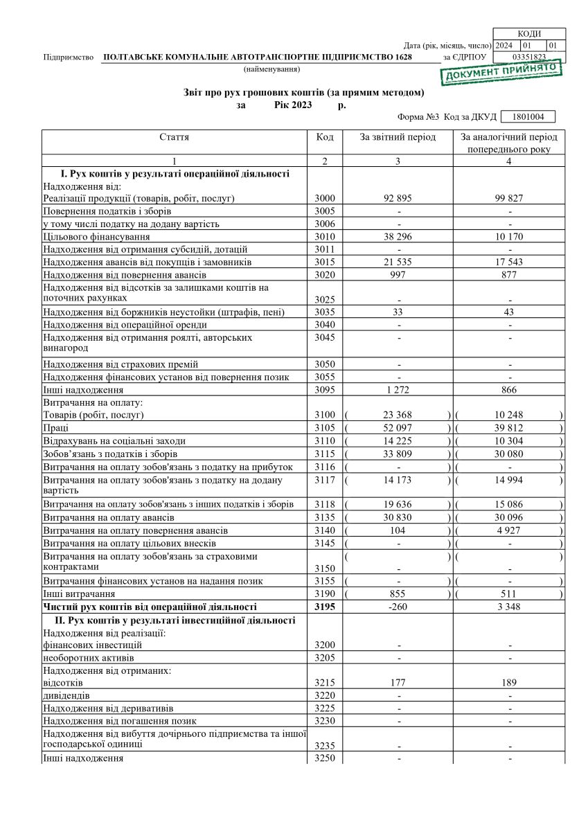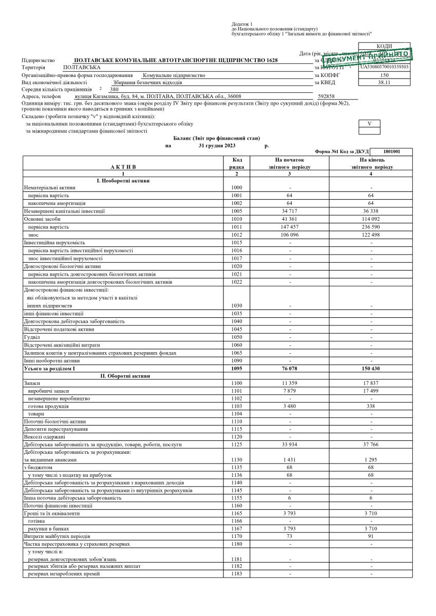 Фінансова звітність Полтавського КАТП-1628 за 2023 рік