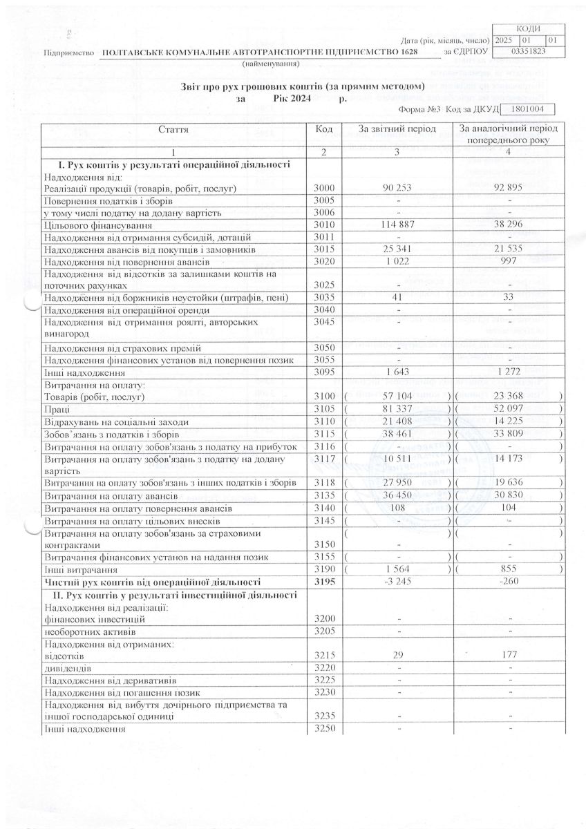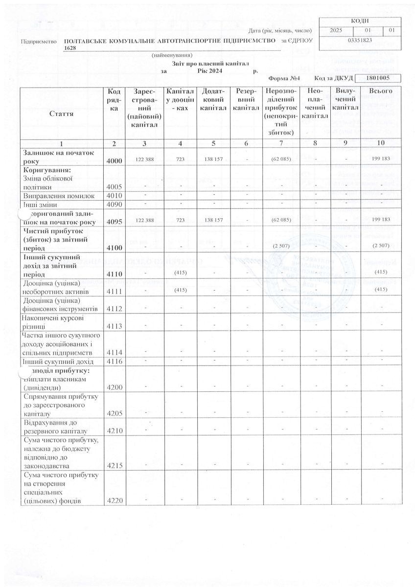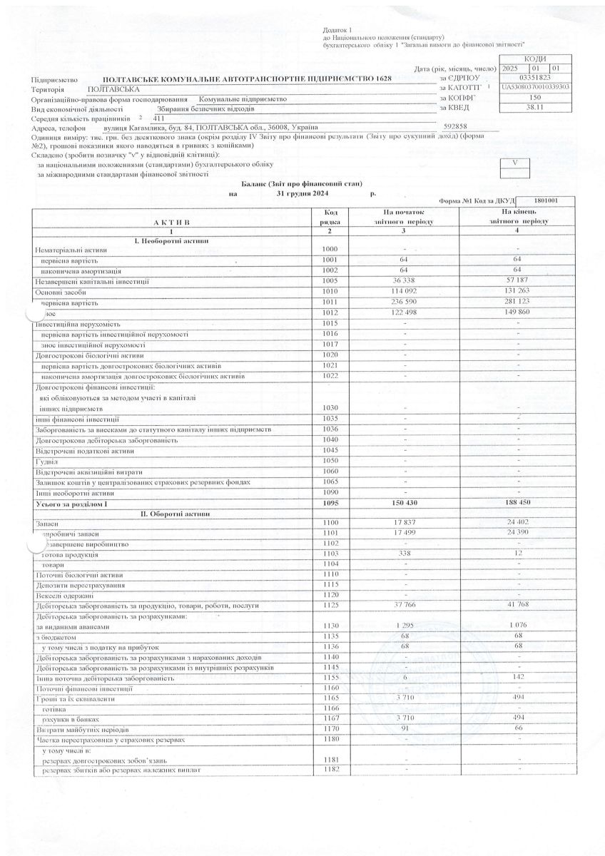 Фінансова звітність Полтавського КАТП-1628 за 2024 рік