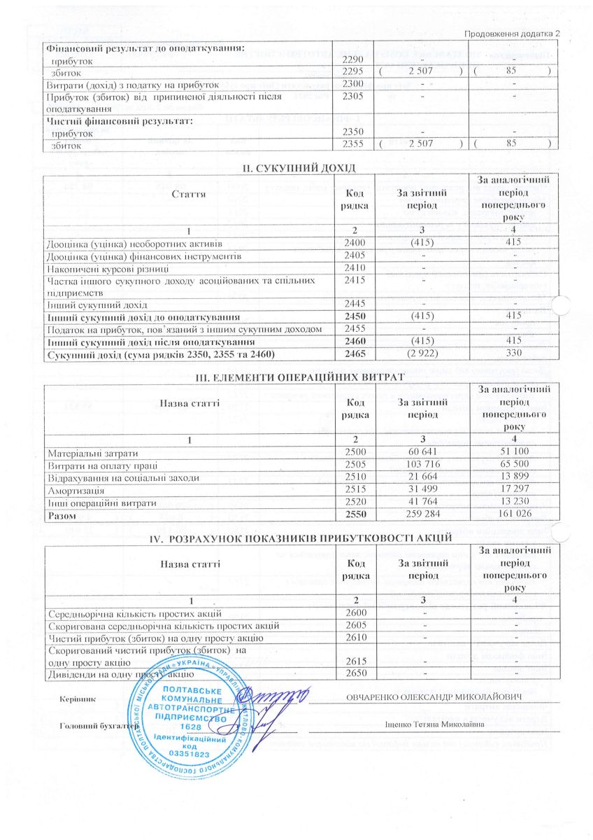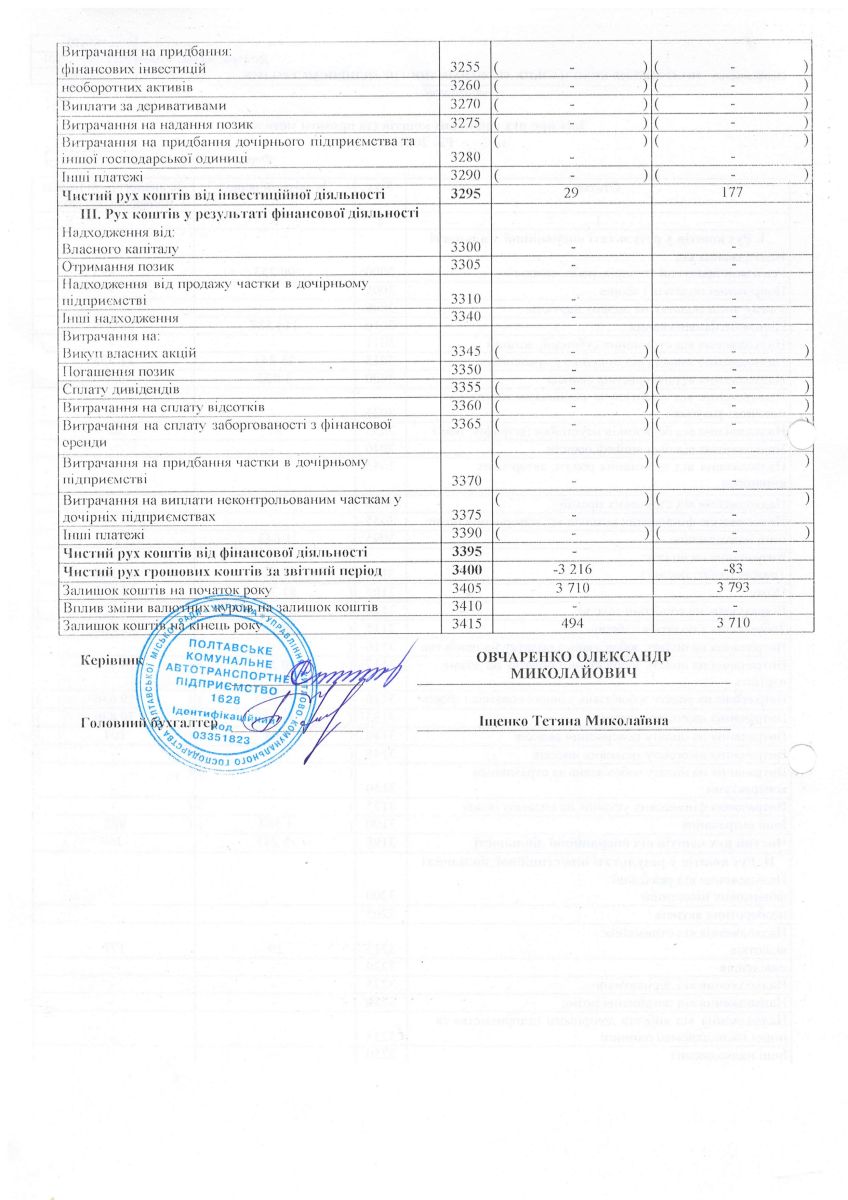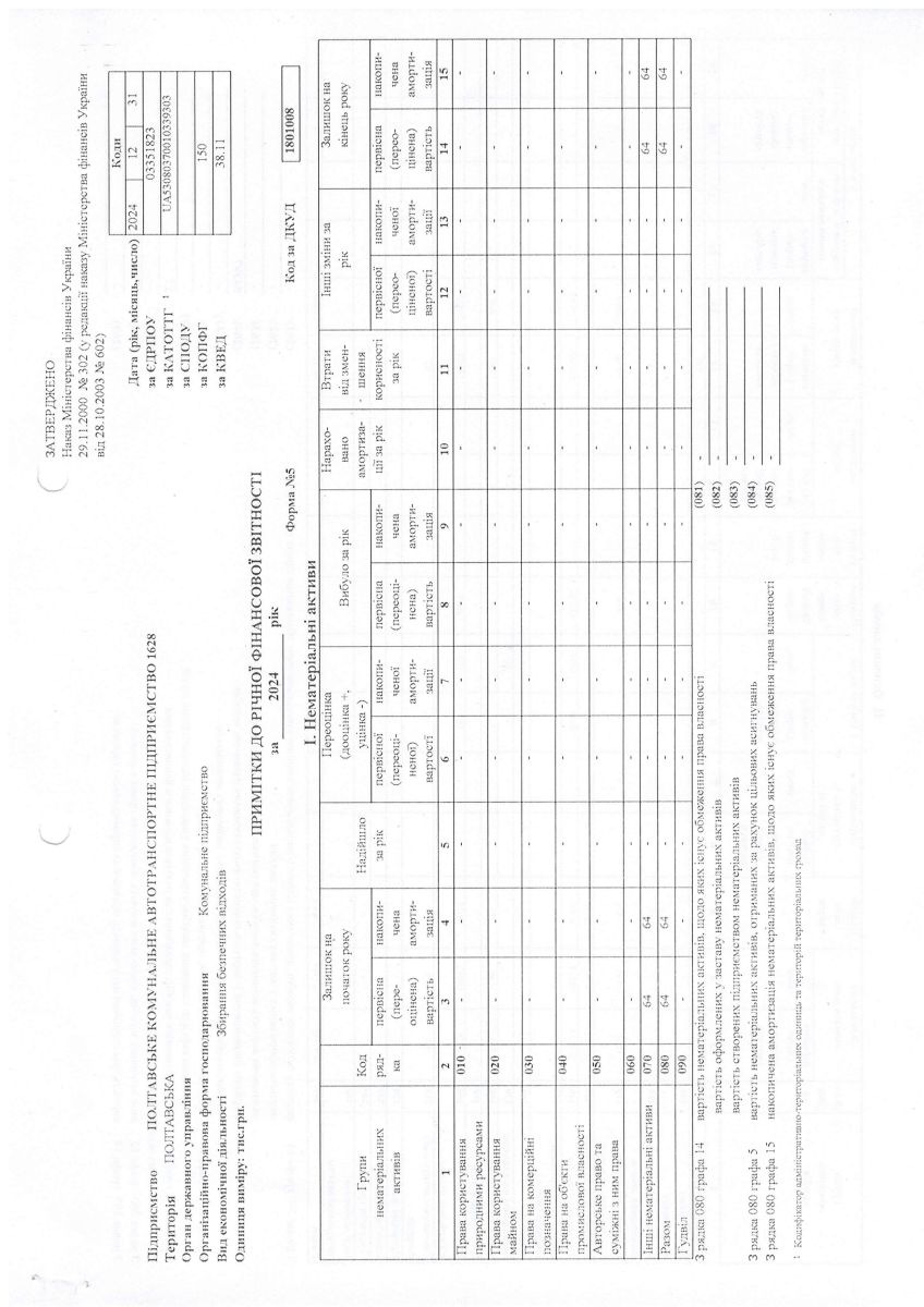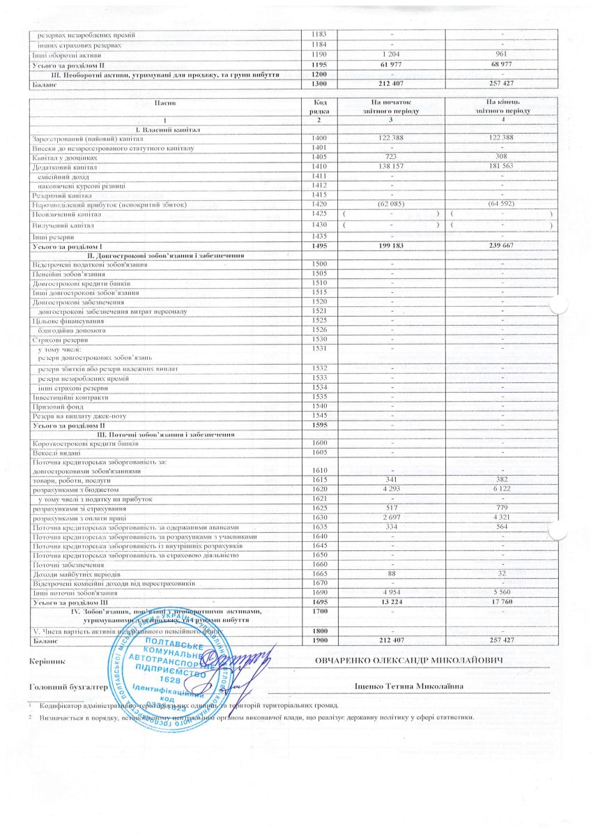 Фінансова звітність Полтавського КАТП-1628 за 2024 рік