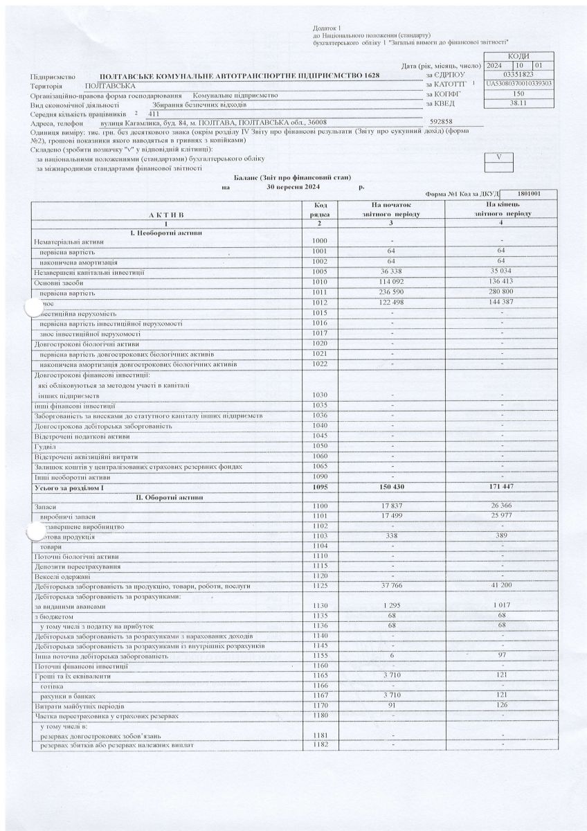 Фінансова звітність Полтавського КАТП-1628 за 9 місяців 2024 року