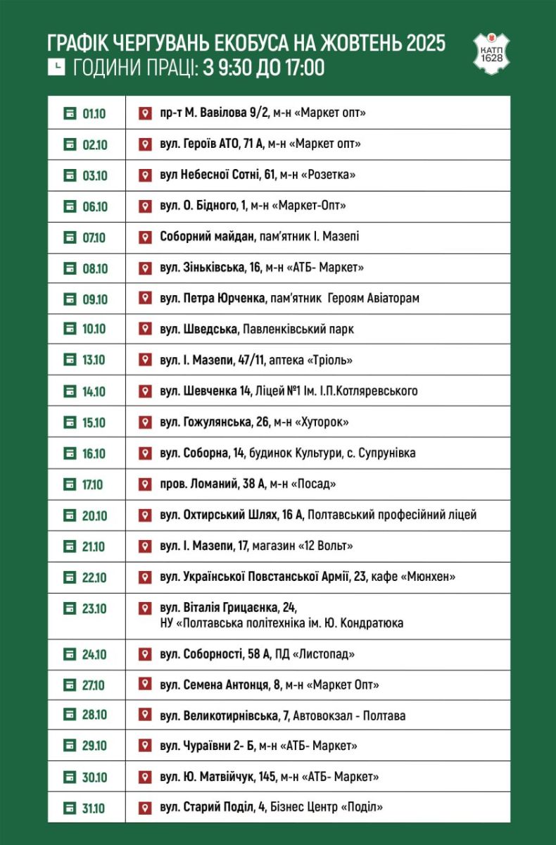 Зберігайте графік чергування екобуса в Полтаві на жовтень 2025 року