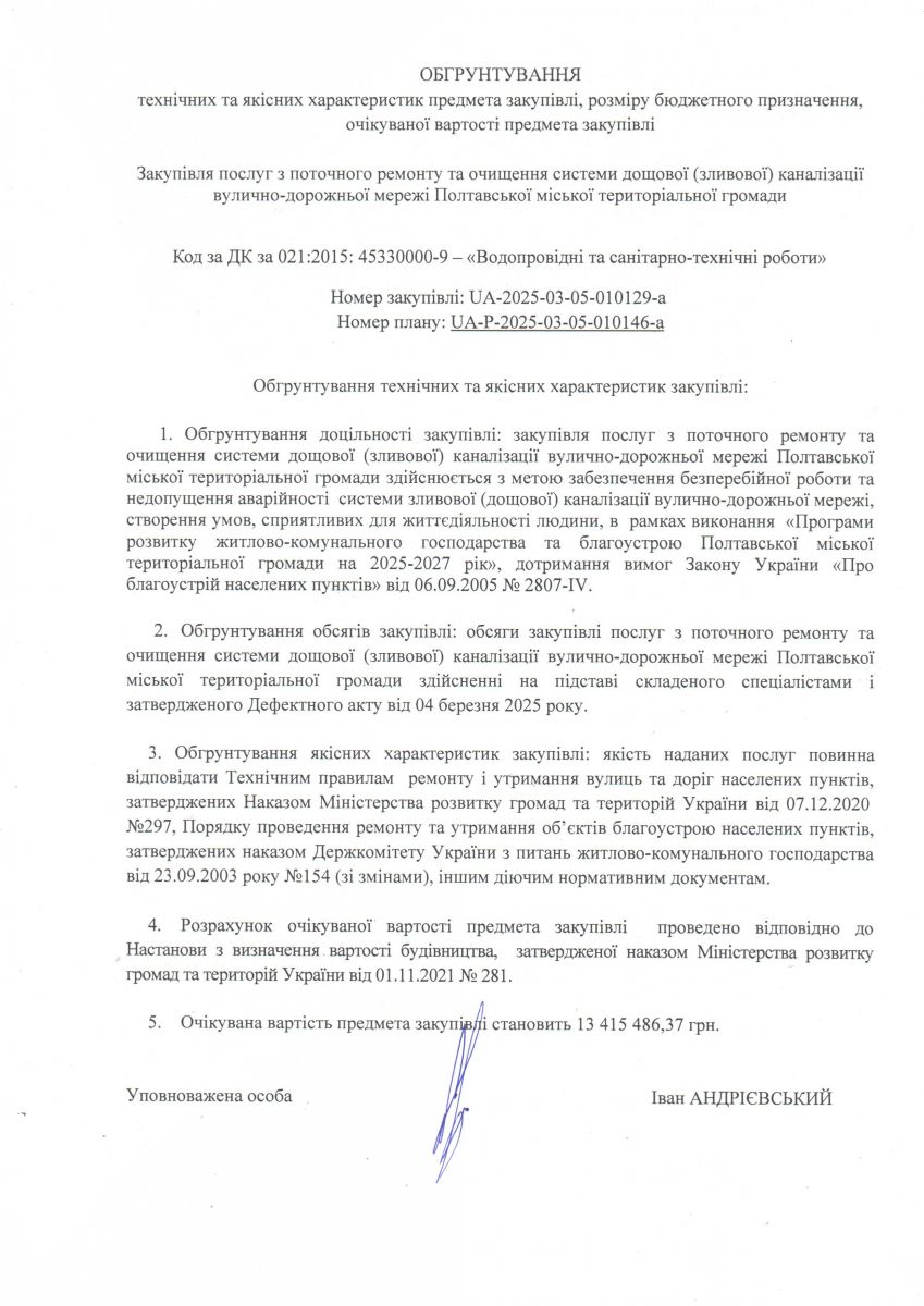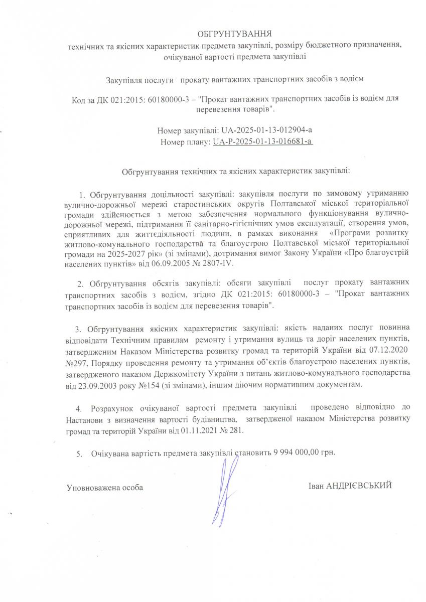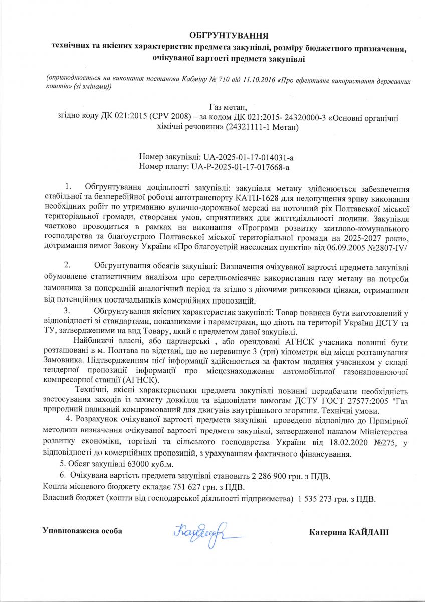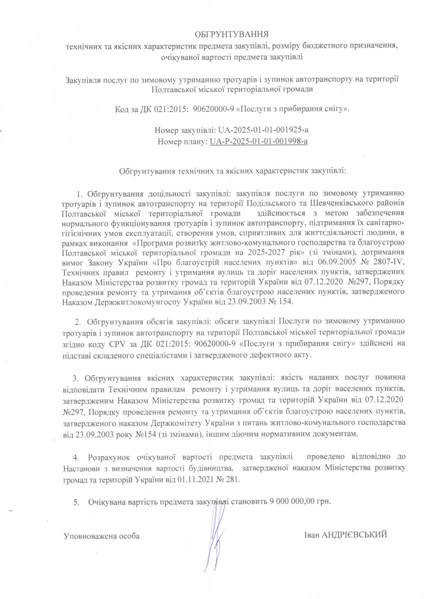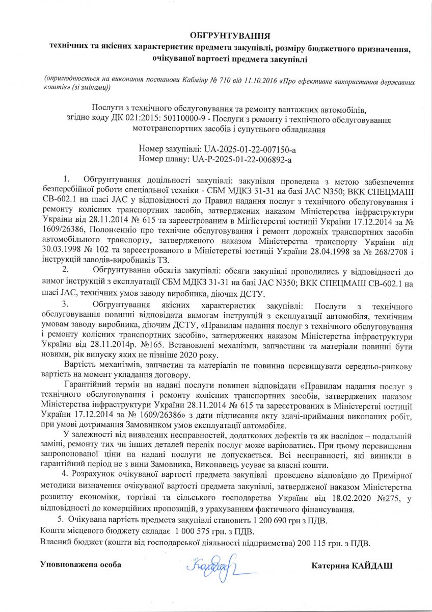 Обґрунтування закупівлі 2025 рік