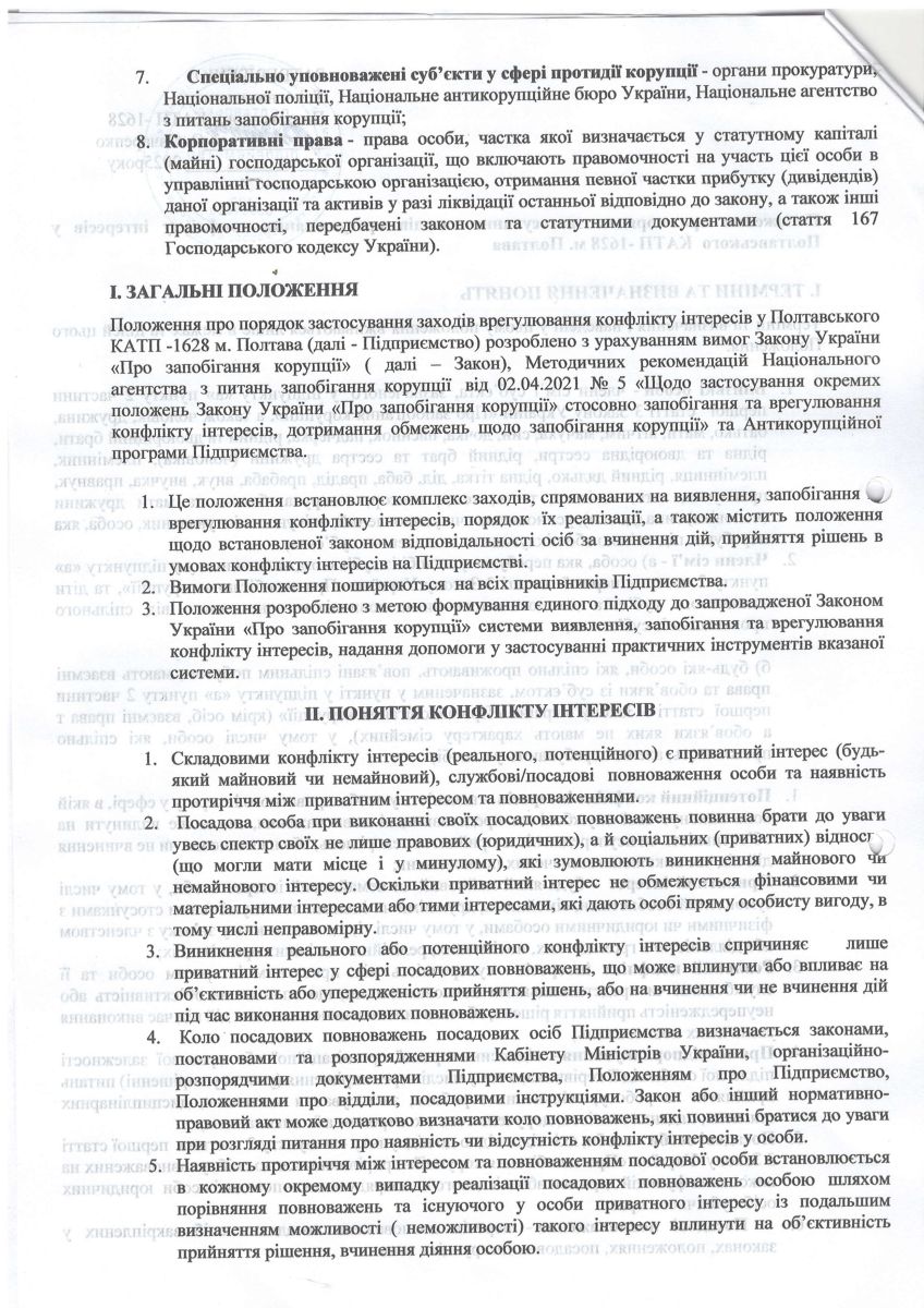 Положення про порядок застосування заходів врегулювання конфлікту інтересів у Полтавському КАТП-1628