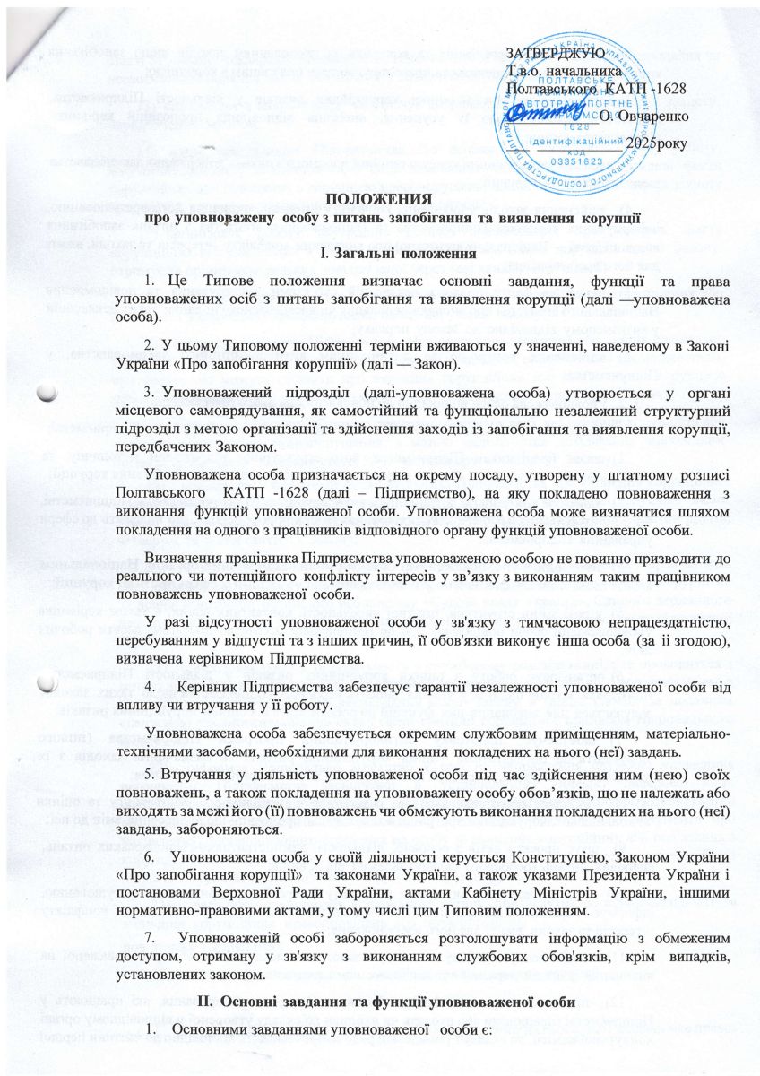 Положення про уповноважену особу з питань запобігання та виявлення корупції